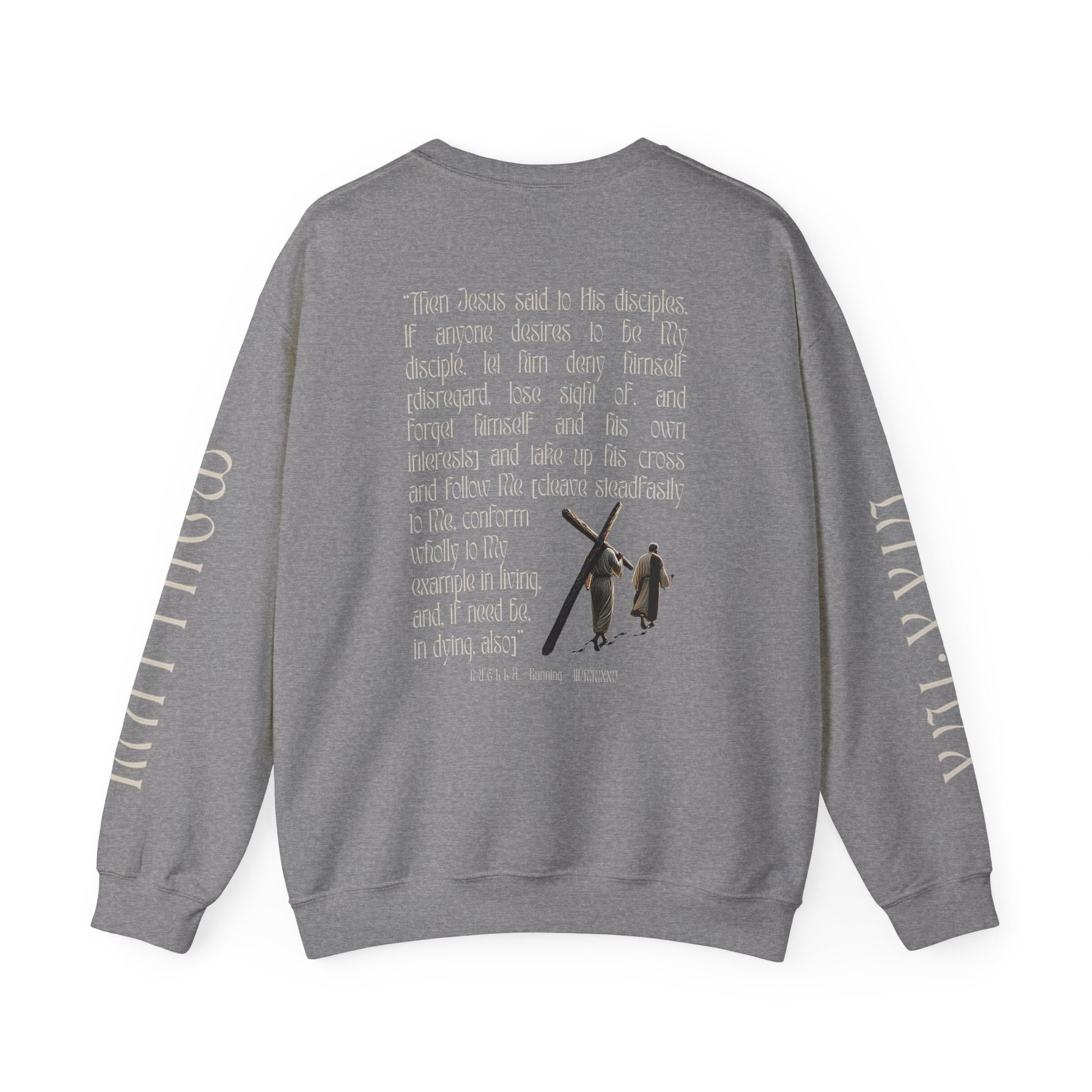 Matthew 16:24 (Matthew XVI:XXIV), Wings Style 2 Sweatshirt, Running Unisex Sweater, Dark Colors, Christian Streetwear