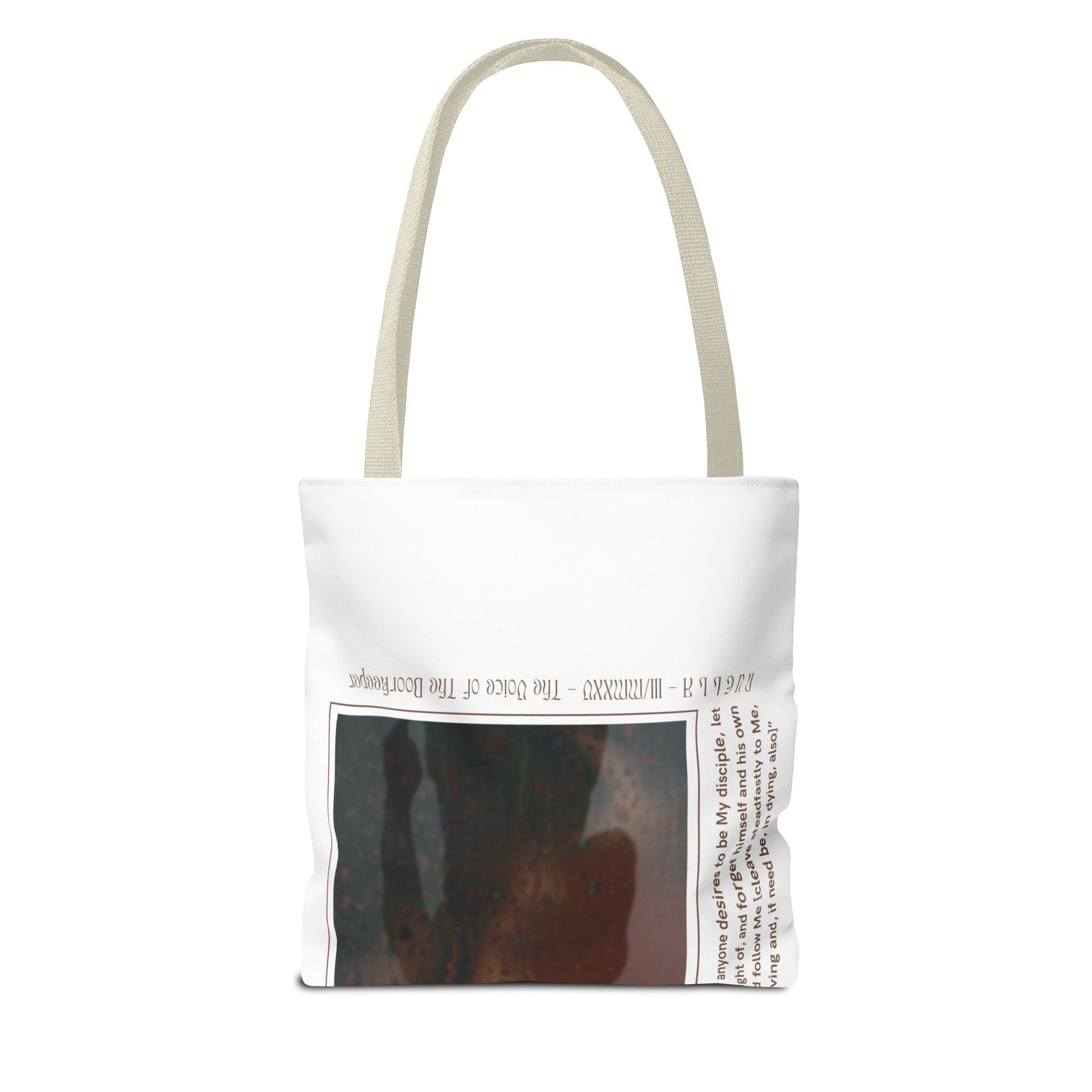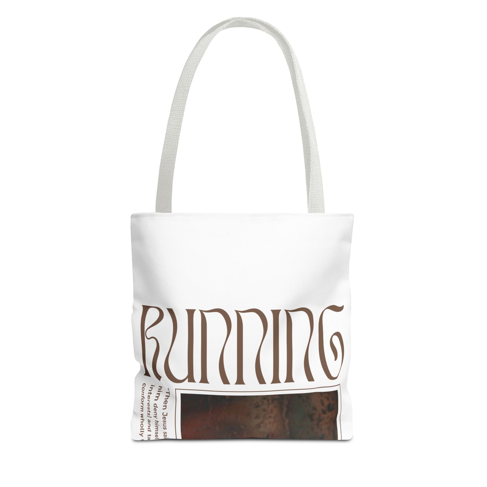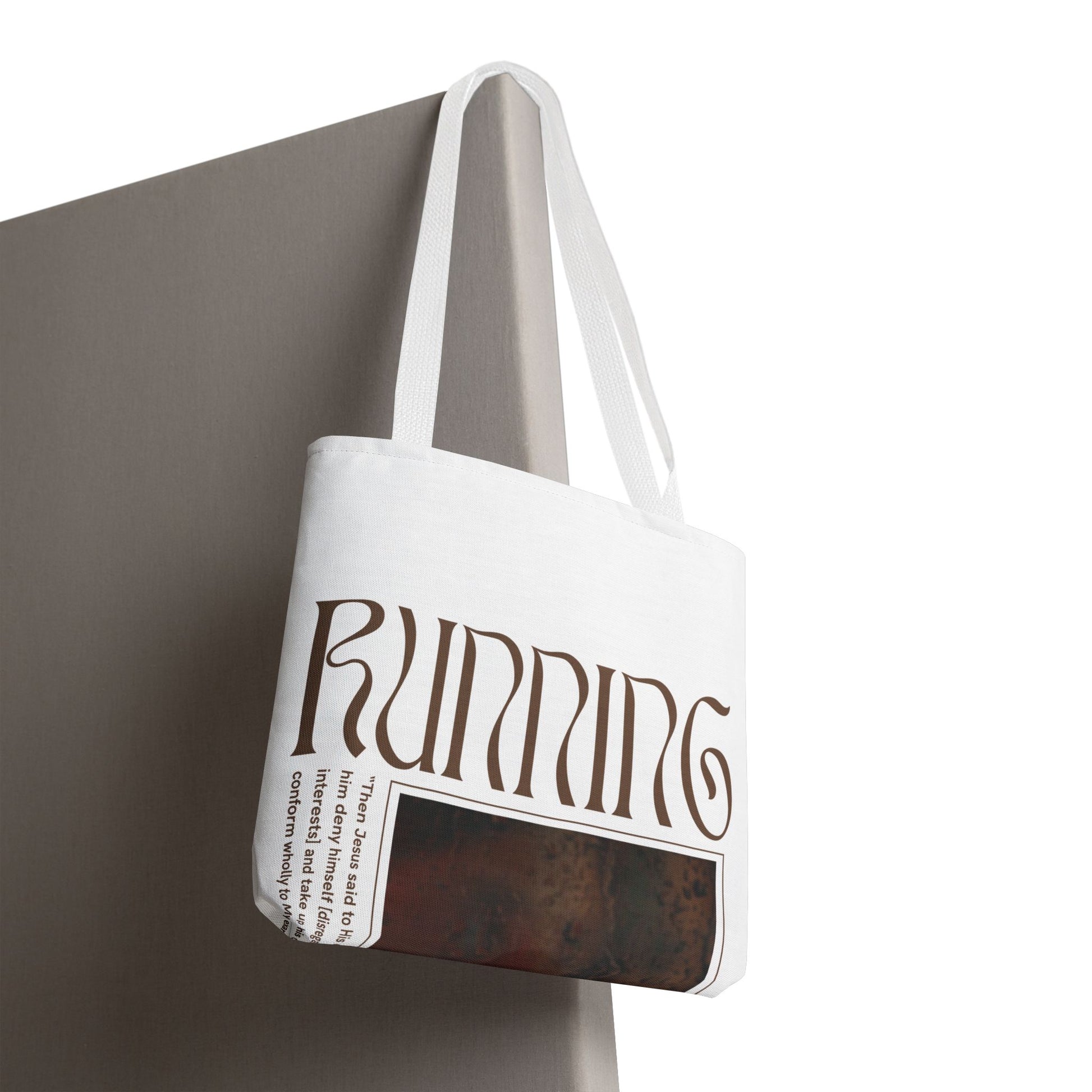 Matthew 16:24 Tote Bag, Inspirational Running Newsletter Style, Bright Color Handbag, Multiple Sizes, Accessory